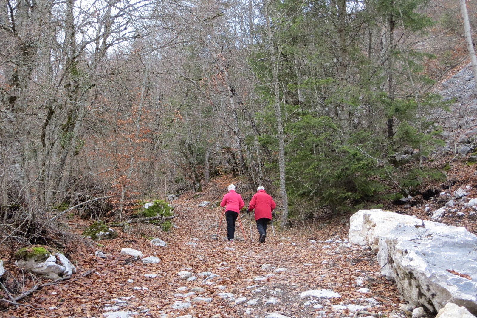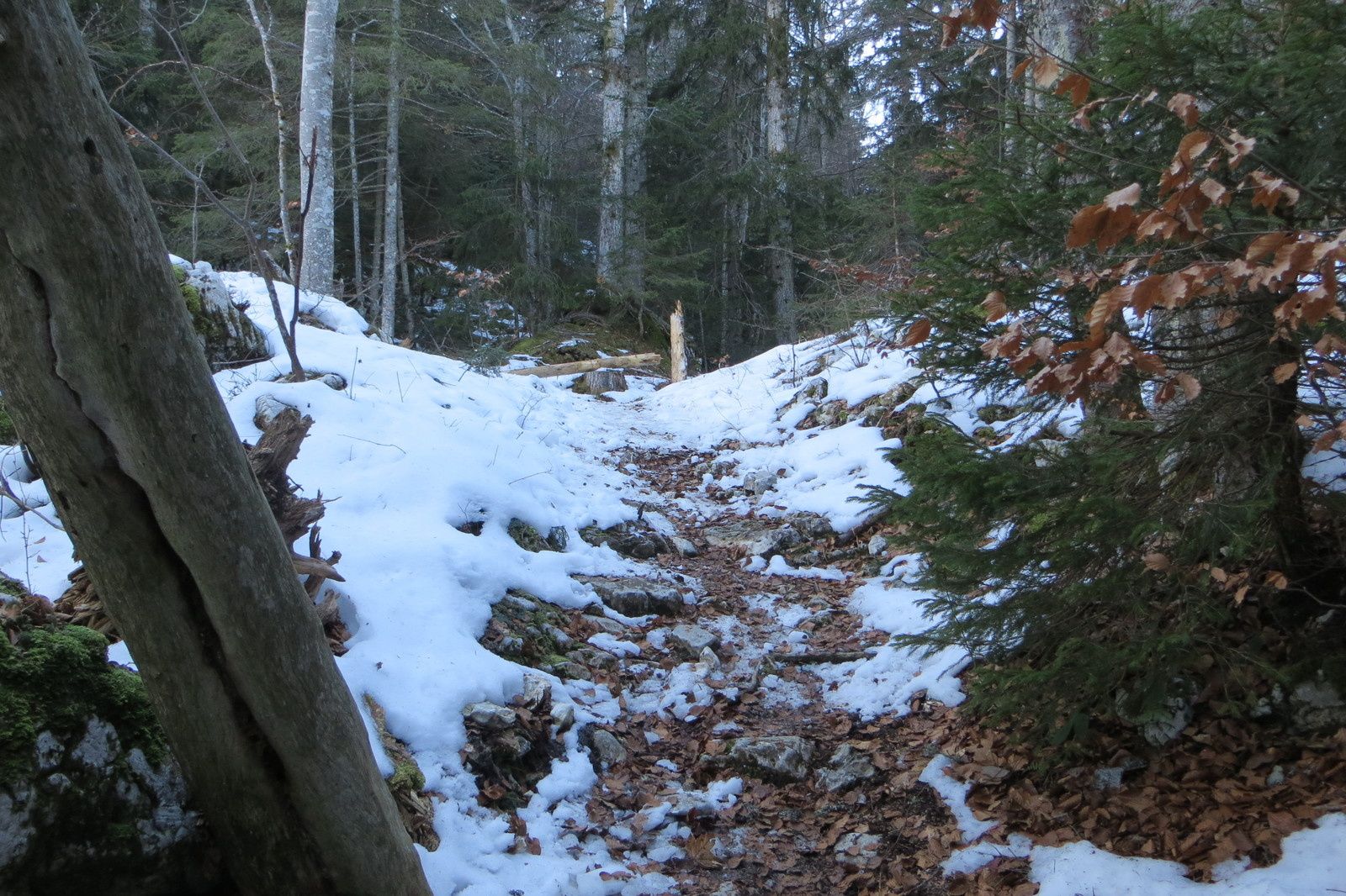 Difficulté : moyenne (raquettes non emportées - car superflues sur les 4/5 du parcours- mais tronçons de neige glacée très glissants sur le haut de l'itinéraire où elles auraient été utiles)